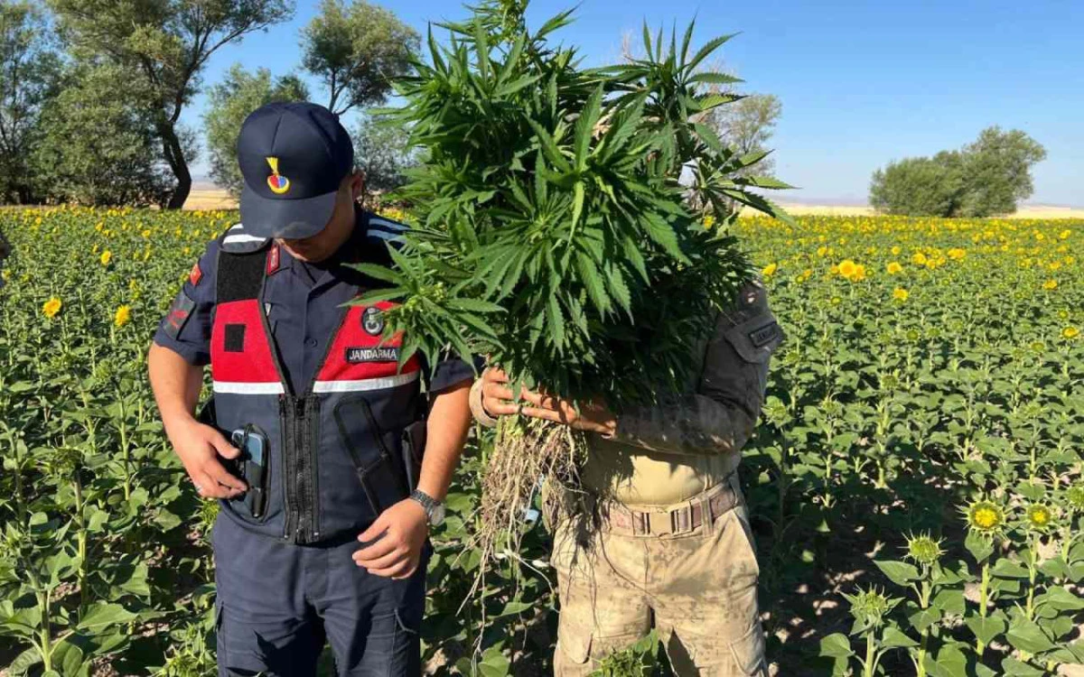 Tarlada yapılan detaylı incelemede, ayçiçekleri arasına gizlenmiş şekilde toplam 428 kök kenevir bitkisi tespit edilerek imha edilmek üzere muhafaza altına alındı.