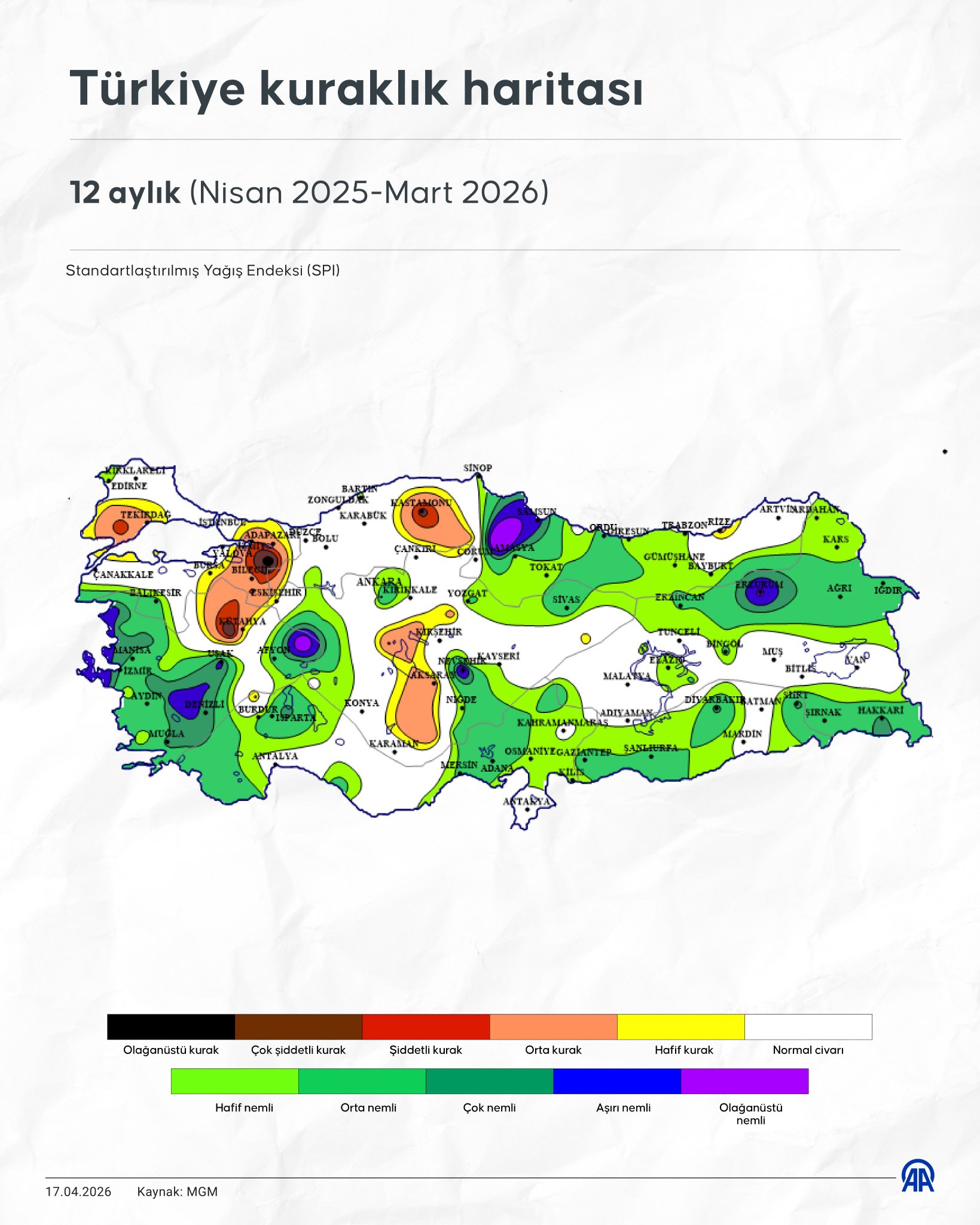 Özellikle uzun vadeli kuraklık, yalnızca tarımsal üretimi değil; orman ekosistemlerini, yer altı su kaynaklarını ve biyolojik çeşitliliği de doğrudan etkiliyor. Son dönemde görülen yağışlı hava, yüzeyde kısmi bir rahatlama sağlasa da haritalar, birçok bölgede geçmiş aylardan ve yıllardan taşınan su açığının hâlâ kapanmadığını gösteriyor.