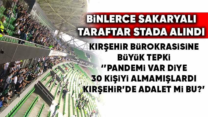 Sakaryaspor tribünlerini görüntüleyen Kırşehirli taraftarlar ise , '' Sakarya Valisi tam 5 bin kişiyi içeri aldı.Kırşehir'in sayın valisi emniyet müdürü görsün.Kırşehir'de 30 kişiyi almadılar pandemi var diye.Bu pandemi sadece Kırşehir'e mi var ? Adalet mi bu ? Satılmış TFF '' diyerek tepki gösterdiler.