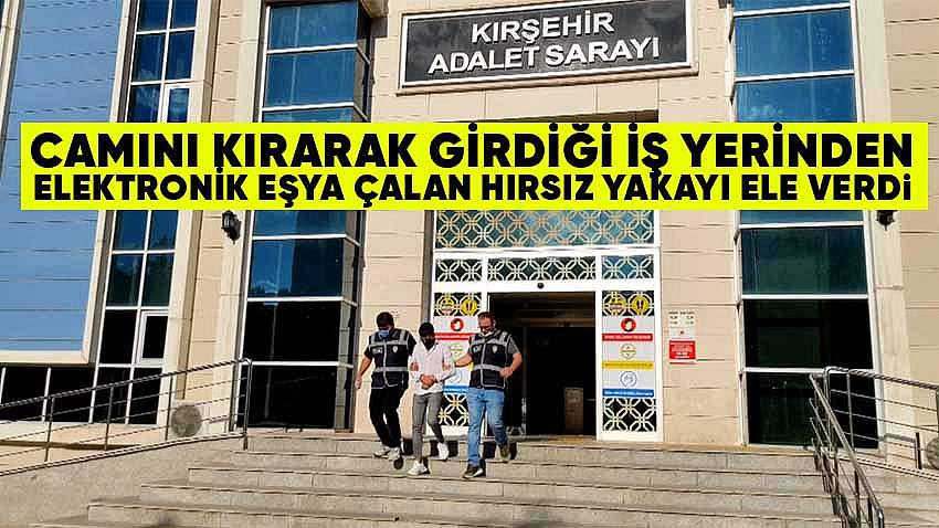 Kırşehir’de, hırsızlık için camını kırarak girdiği iş yerinden elektronik eşya çalan K.K. (22), çıkarıldığı mahkemece tutuklandı.