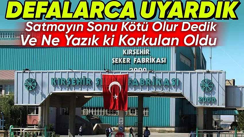 Kırşehir Şeker Fabrikası ile birlikte 14 şeker fabrikasının özelleştirme sürecinde, sürekli olarak dile getirdiğimiz ''şekerde dışa bağımlı hale gelebiliriz'' öngörüsü bizi dinlemeyenlerin sayesinde gerçekleşti.