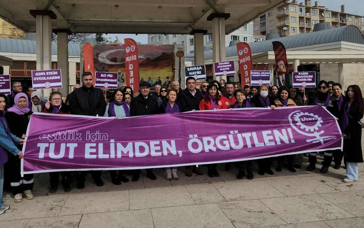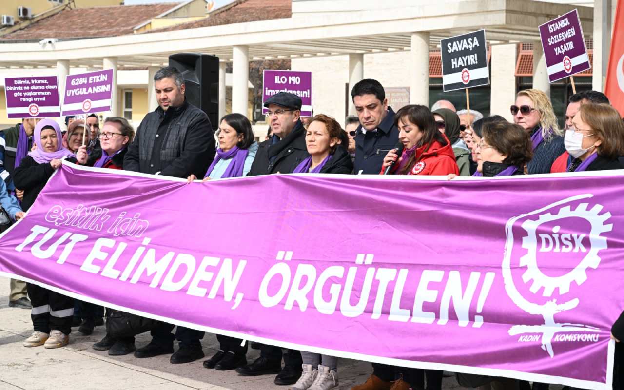 DİSK’li kadınlar açıklamada öne çıkan taleplerini şöyle sıraladı: İstanbul Sözleşmesi ve 6284 sayılı Yasa’nın etkin şekilde uygulanması; ILO’nun 190 sayılı Şiddet ve Taciz Sözleşmesi’nin Türkiye tarafından onaylanarak uygulanması; kadın cinayetleri ve toplumsal cinsiyet temelli suçlarda cinsiyetçi indirim uygulamalarına son verilmesi; esnek çalışma modelleri yerine tam zamanlı ve güvenceli istihdamın artırılması; kreş ve bakım hizmetlerinin kamusal ve ücretsiz bir hak olarak yaygınlaştırılması; kamu-özel ayrımı olmaksızın çalışan ebeveynlere dönüşümlü ve eşit biçimde ücretli izin sağlanması.
