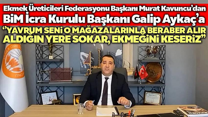 Ekmek Üreticileri Federasyonu Başkanı Murat Kavuncu, BİM CEO'su Galip Aykaç'a "Yavrum, seni o mağazalarınla beraber alır, aldığın yere sokarız" diye seslendi. Kavuncu, Cumhur İttifakı'na olan desteğini de açıkça dile getirdi.