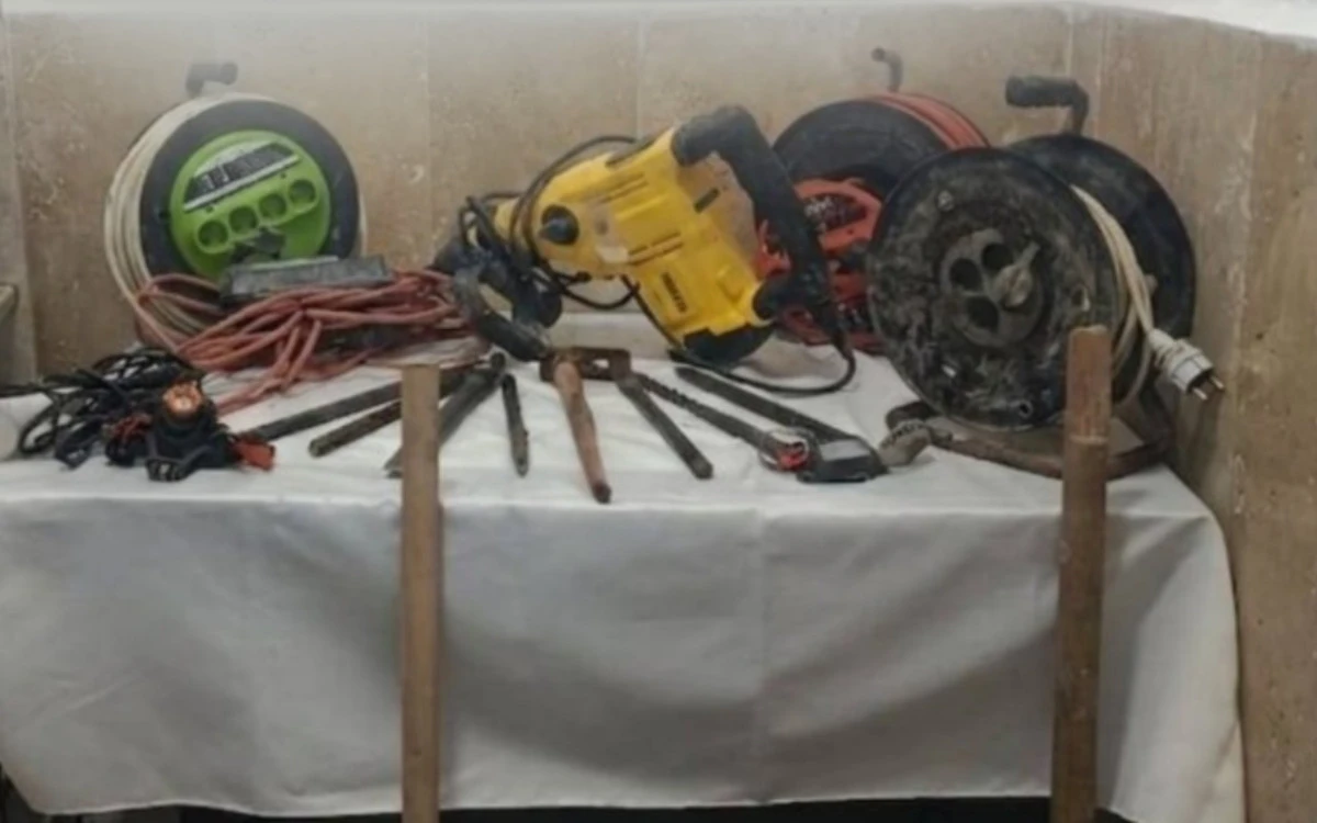 Yapılan incelemede, 1 elektrikli hilti, 1 kazma, 2 kürek, 10 metre halat, 2 merdiven ve 7 hilti ucunun muhafaza altına alındığı öğrenildi.