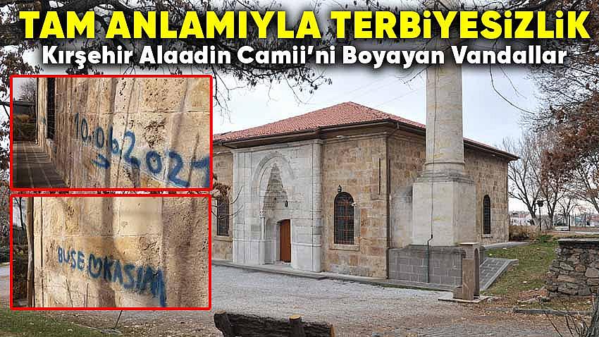 Anadolu Selçuklu şehri olan Kırşehir'de bu dönemden kalan çok sayıda tarihi eser ve mimari yapı da bulunuyor.Bu yapıların en önemlilerinden olan ve tarihi kalehöyük'ün üstünde yer alan, Selçuklu Sultanı Alaaddin Keykubat tarafından inşa ettirilen Alaaddin Camii, son dönemde birçok tarihi yapıda meydana gelen vandalizmden nasibini aldı.Sprey boyalar ile tarihi caminin duvarlarına isimlerini yazan ve tarih atan kendini bilmezler büyük tepki çekti.