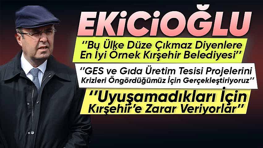 Kırşehir Belediye Başkanı Selahattin Ekicioğlu, projeler, Ülke ve Kırşehir gündemine ilişkin önemli açıklamalarda bulundu.Dünya'da gıda ve enerji alanındaki ihtiyacı öngördükleri için GES ve üretim tesisi projesi gerçekleştirdiklerini belirten Ekicioğlu, ''Bu ülke düzelmez diye düşünmeyin.Kırşehir Belediyesi kendi çabaları ve imkanlarıyla batık bir belediyeden proje üreten bir belediye haline geldi.Türkiye'de iktidar değişkliği ile hemen düze çıkacaktır.Bunun en iyi örneği biziz'' dedi.