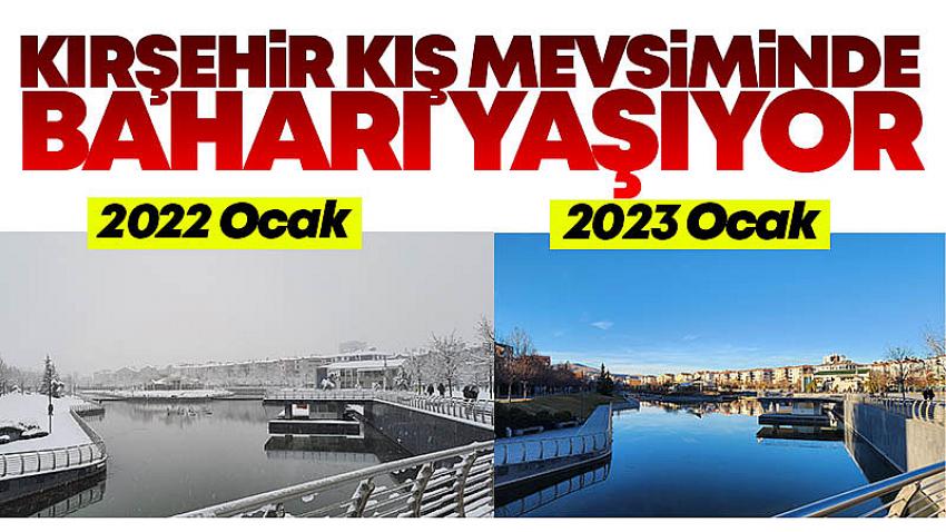 2022 Ocak ayında yoğun kar yağışı ile birlikte çetin bir kış mevsimi geçen Kırşehir'de, aynı dönemde bahar havası yaşanıyor.Geçtiğimiz yıl ocak ayında Kentpark'ta çekilen fotoğrafta, yoğun kar yağışı sonrası Kırşehir'in bembeyaz bir örtüyle kaplı olduğu görülürken 19 Ocak 2023 tarihinde yine aynı noktadan çekilen bir başka fotoğrafta ise Kırşehir'in bahar havasında bir kış mevisimi geçirdiği görülüyor.