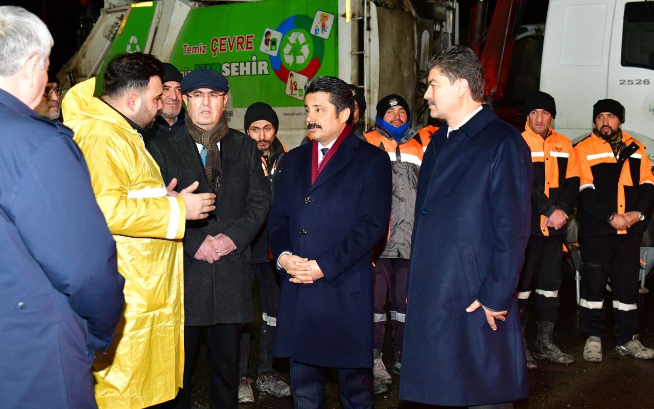 Kontrol noktası ziyaretinin ardından protokol, Kırşehir Belediyesi’ne bağlı İtfaiye Müdürlüğü ile Temizlik İşleri Müdürlüğü’nü ziyaret ederek yeni yıla mesai başında giren emekçilerle bir araya geldi. Belediye Başkanı Selahattin Ekicioğlu, yaptığı değerlendirmede, yeni yıl gecesi kent için fedakârca çalışan tüm personele teşekkür ederek sağlık ve huzur temennisinde bulundu.
