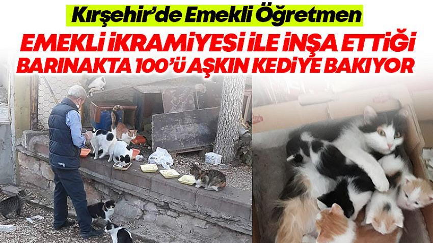 Kırşehir'de emekli öğretmen Mevlüt Sönmez, emekli ikramiyesi ile kurduğu barınakta 100'e yakın kediye ev sahipliği yapıyor.