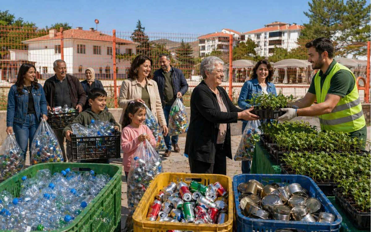 Kırşehir Belediyesi, Sıfır Atık Projesi kapsamında 27-30 Nisan 2026 tarihleri arasında 50 adet plastik veya metal geri dönüşüm malzemesi getiren vatandaşlara 3 viyol fide hediye edecek.