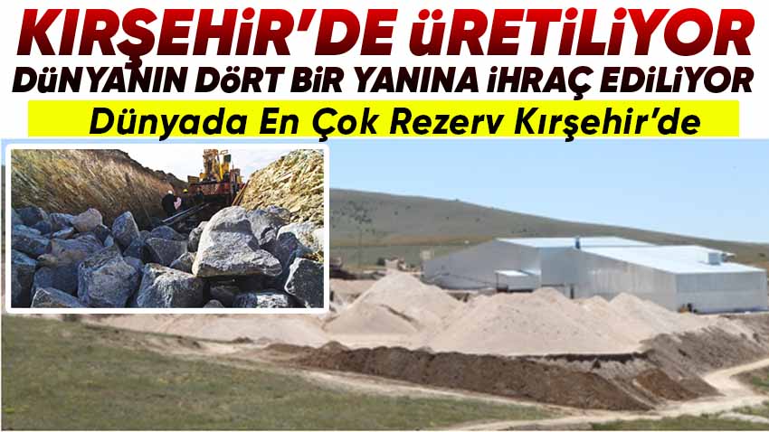 Cam ve Seramik yapımında kullanılan ve dünyada en çok rezerve sahip olan Kırşehir'de çıkarılan nefelinli siyenit madeni dünyanın dört bir yanına ihraç ediliyor.