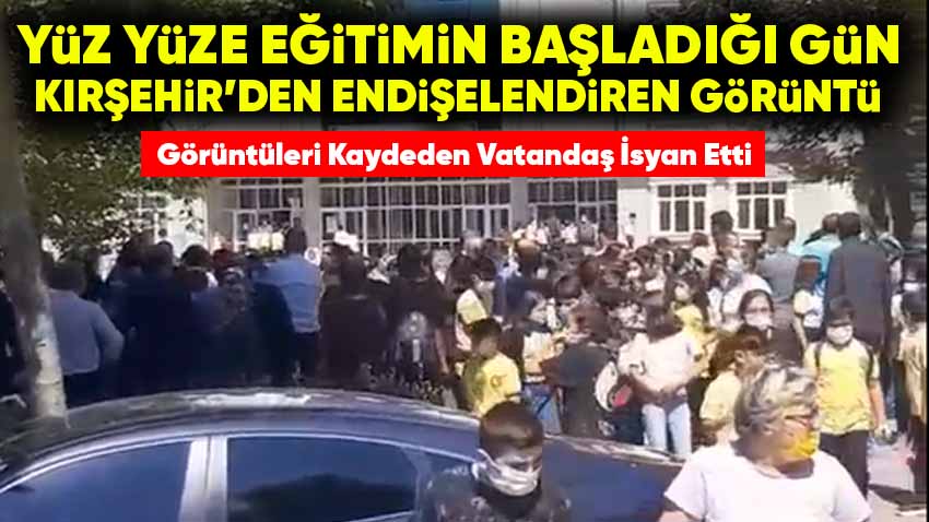 Okulların açılmasıyla birlikte tüm yurtta olduğu gibi Kırşehir'de de öğrenciler yüz yüze eğitime başladı.Ancak okulların önünde velilerin oluşturdukları görüntüler Koronavirüse adeta davetiye çıkardı.Cumhuriyet İlköğretim okulu önünde bekleyen velileri ve öğrencileri görüntüleyen vatandaş , '' Burası Kırşehir Cumhuriyet İlköğretim Okulu.Gördüğünüz gibi hiç bir şekilde sosyal mesafeye, tedbirlere uyma yok.Herkes iç içe.Bu böyle olursa biz Koronavirüsle baş edemeyiz.Boşuna aşı vurdurup çabalamayın.'' ifadelerini kullandı.