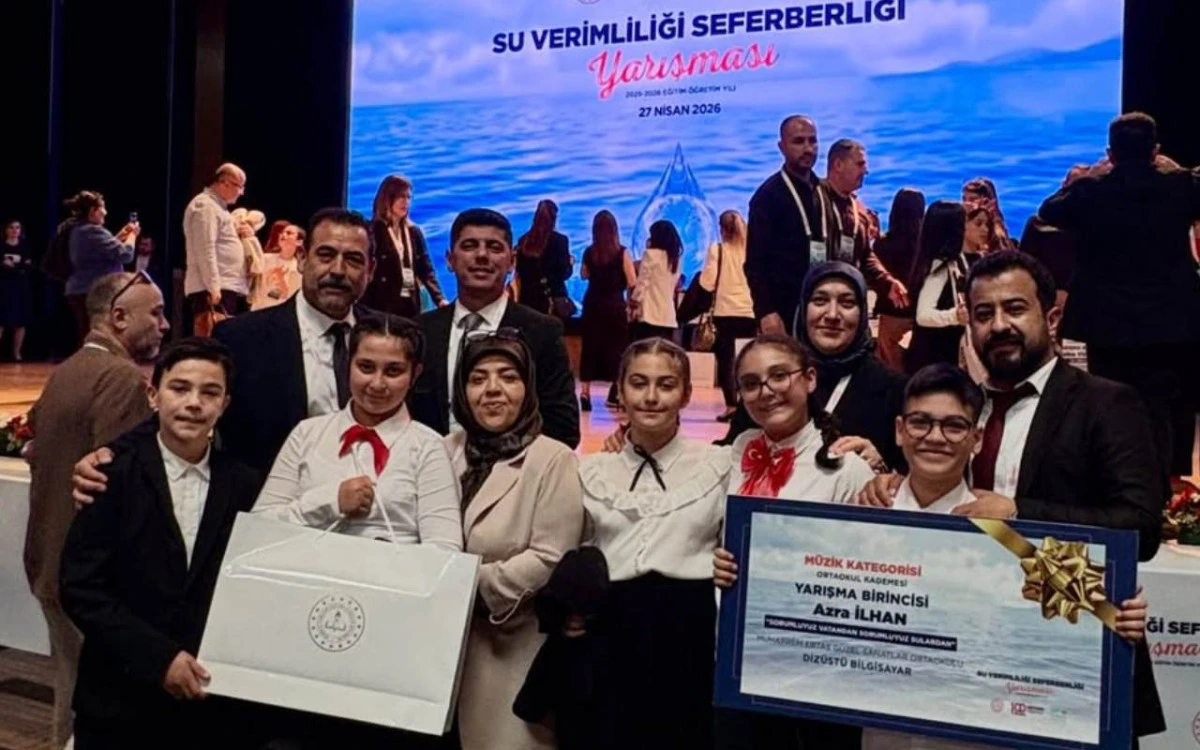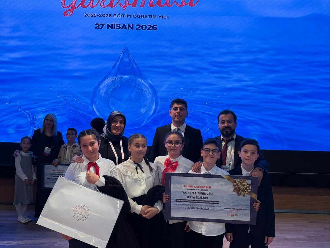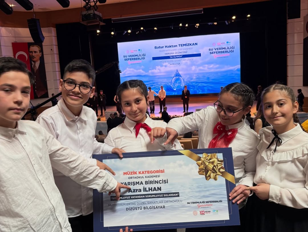 Muharrem Ertaş Müzik Ortaokulu, öğrencileri ve öğretmenlerinin ortak emeğiyle hazırladığı “Sorumluyuz Sulardan, Sorumluyuz Vatandan” adlı eserle yarışmada önemli bir başarıya imza attı. Okul tarafından aranjmanı yapılan ve kayıt altına alınan eser, ortaokul müzik kategorisinde Türkiye birincisi seçildi.