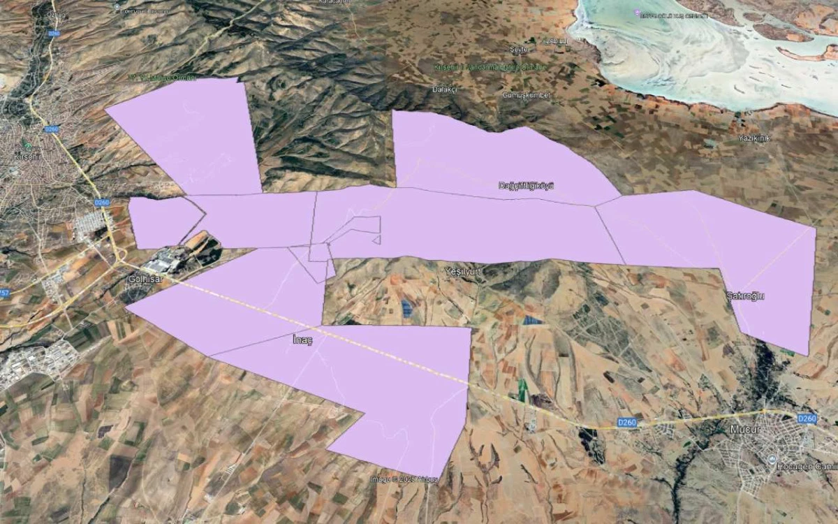 Koza Altın’ın ruhsat sahaları, Mucur ilçesine bağlı Şatıroğlu Mahallesi’nden başlayarak Dalakçı Köyü’ne kadar uzanıyor. En çarpıcı noktalardan biri ise, Ankara-Kayseri D260 Karayolu’nun hemen yanı başındaki İnaç Köyü ve Petlas fabrikası çevresinin de bu sahalara dahil edilmiş olması. Ruhsat haritasına göre, Kervansaray, Gölhisar ve Kındam gibi yoğun nüfuslu yerleşim alanlarının toprakları da bu alanın içinde kalıyor.