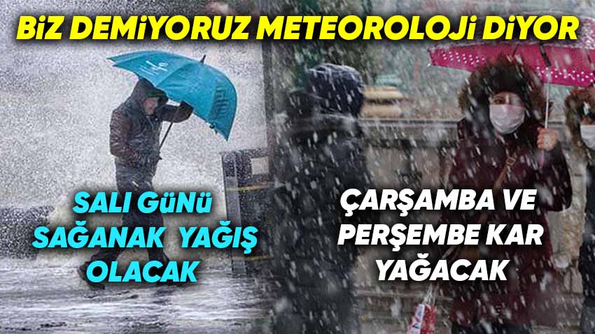 Meteorolojiden yapılan tahmini değerlendirmede ; Salı günü sağanak yağışın olacağı ancak çarşamba ve perşembe günü havanın soğumasıyla birlikte sağanak yağışın yerini kar yağışına bırakacağı belirtildi.