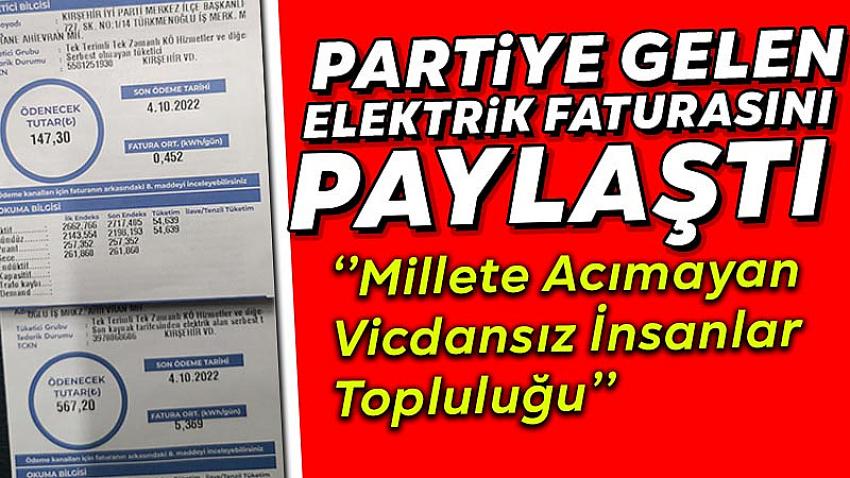 Elektrik faturalarına gelen zammın ardından vatandaşlar evlerine gelen yüksek tutarlı faturalar karşısında tepki gösterirken bir tepki de Kırşehir İYİ Parti İl Başkanı Müfit Göçen'den geldi.
