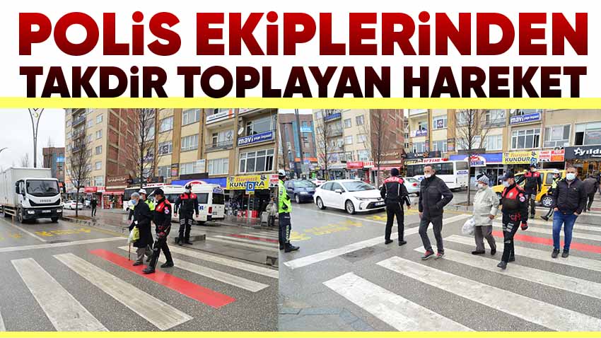 Kırşehir'de yaşlı vatandaşların karşıdan karşıya geçmekte zorluk yaşadığını gören polis ekipleri kendilerine eşlik etti.