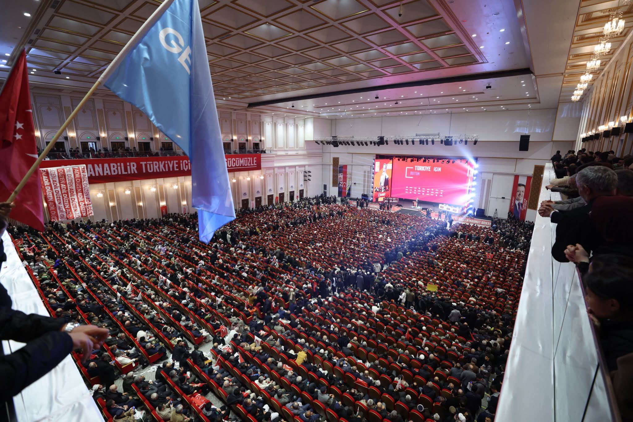 Saadet Partisi’nin 19 Nisan 2026 Pazar günü Ankara Büyük Kongre Merkezi’nde düzenlediği “Türkiye Divanı” programı, Türkiye’nin 81 ilinden gelen teşkilat mensuplarını bir araya getirdi. Parti kaynakları ve etkinliği takip eden yayınlarda, organizasyonun geniş katılımla gerçekleştiği, salonda özellikle il teşkilatları ile gençlik yapılanmalarının yoğun şekilde yer aldığı aktarıldı. Programda yeni döneme ilişkin siyasi mesajlar öne çıkarken, Genel Başkan Mahmut Arıkan da seçim hazırlıklarına ilişkin kararlılık vurgusu yaptı.